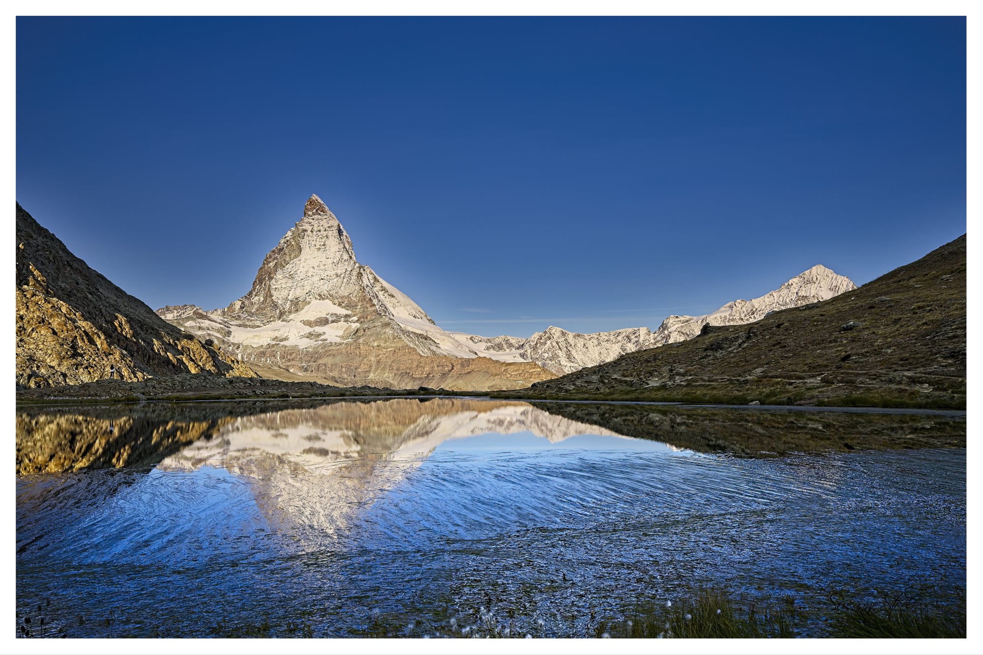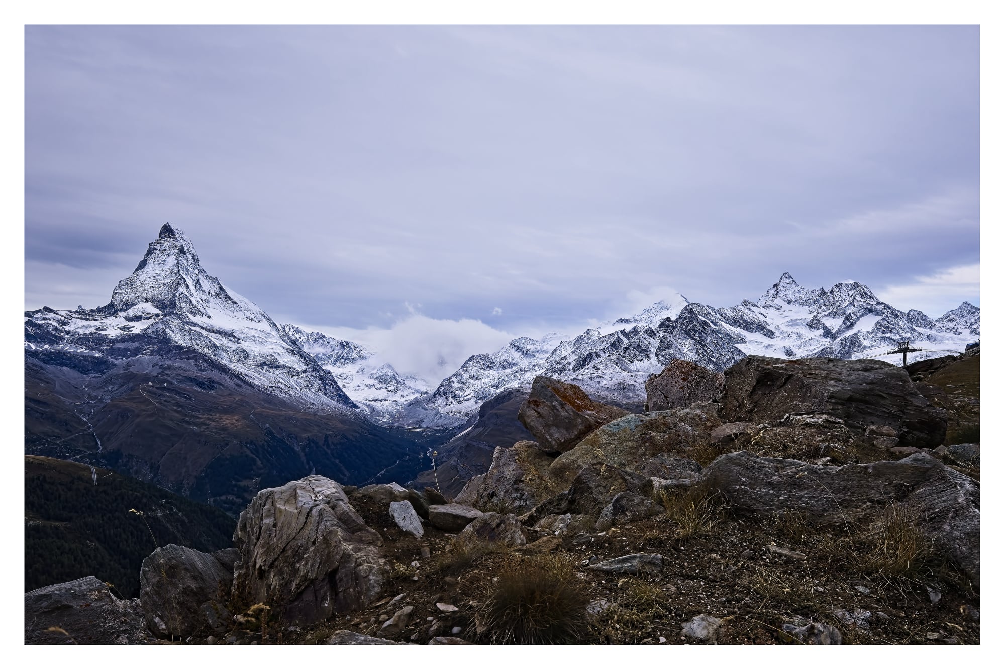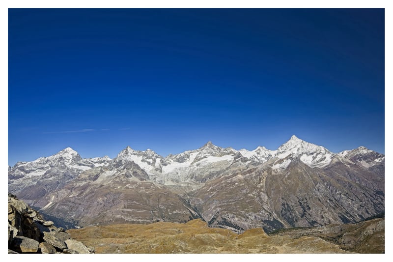 Das Matterhorn übte schon immer eine große Anziehungskraft und Faszination auf jeden für Großartigkeit und Schönheit empfänglichen Menschen aus. Auch auf mich. Die Gelegenheit war günstig: Auf Einladung zu einem Workshop der Canon-Academy habe ich hier zwei Tage verbracht. Schön ist es, sehr imposant - die Berge als auch die Infrastruktur sind einfach überwältigend. Ebenso die Menschenmassen. Alles ist für einen Massenandrang von Touristen ausgelegt und es ist kein Ende vom Bauen von Hotels, Appartements, Tunneln und anderem etwaigen Schnickschnack in Sicht, welches noch mehr Touristen - vor allem Reiche - in die Matterhorn-Region lockt. Als ich den Grenz- und den Gornergletscher unterhalb des Monte Rosa Massivs gesehen habe, fragte ich mich aber, wie lange dieser Zustrom noch andauert. Die Gletscher gehen massiv zurück, alles ist karg, grau, nur ein paar Flechten und Moose finden langsam ihren Platz auf dem freigelegten Geröll. Unterhalb der Vegetationsgrenze sieht es natürlich anders aus. Für mich viel reizvoller als ganz oben auf den Bergen.